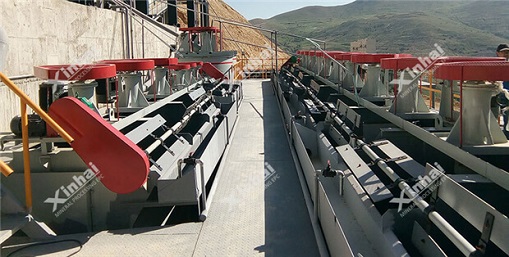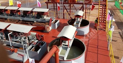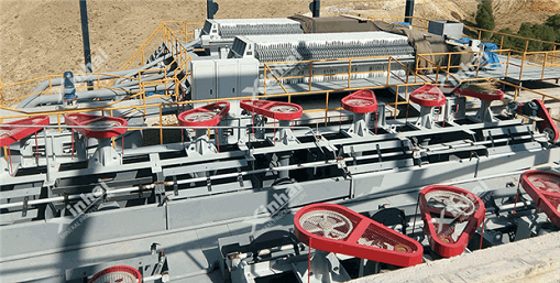 浮选采用XCF-KYF联合机组,粗选采用XCF-8和KYF-8混合充气浮选机组,精选采用SF4浮选机,扫选采用XCF-8和KYF-8混合充气浮选机组。该搭配具有配置简单合理,减少功耗等优点。精选采用能自吸气的SF型浮选机,浮选效果良好。